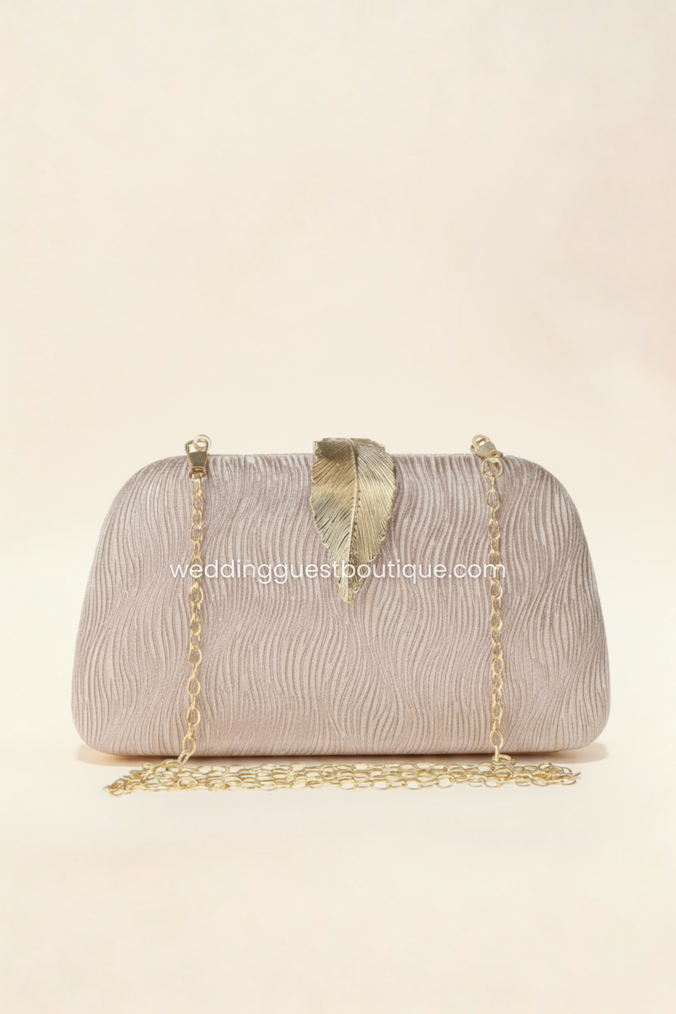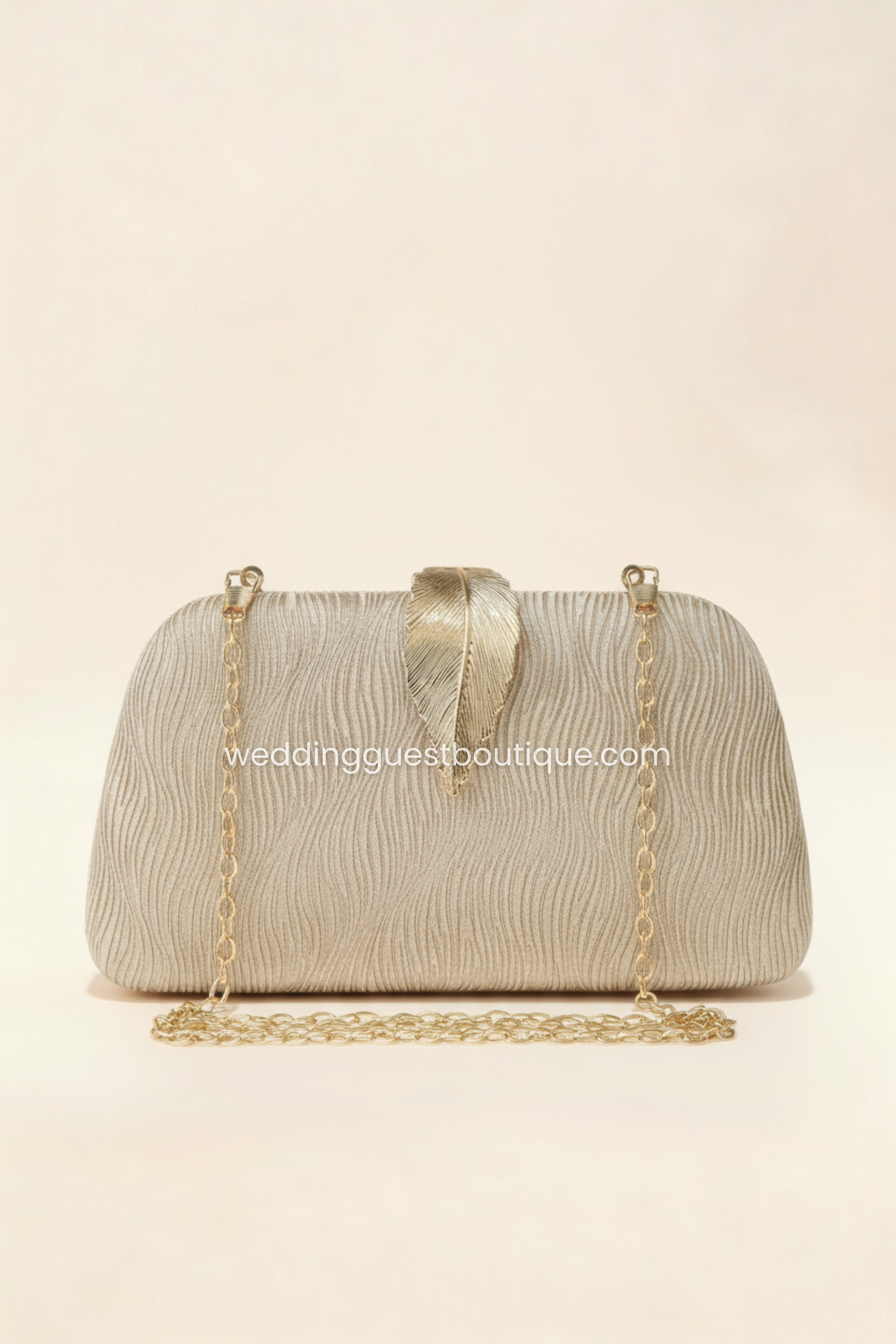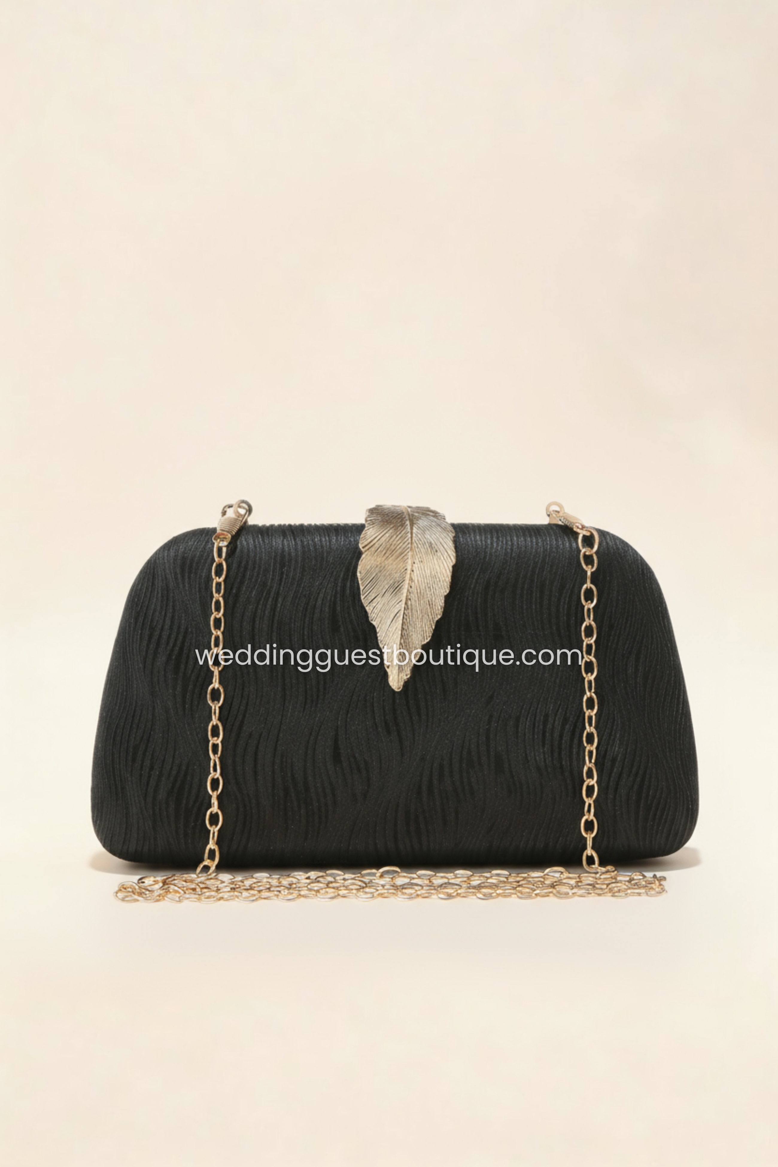 The Kyla Gold Leaf Accent Satin Clutch is more than just an accessory—it’s a statement of timeless refinement and modern grace, designed to complete your most sophisticated looks with ease.