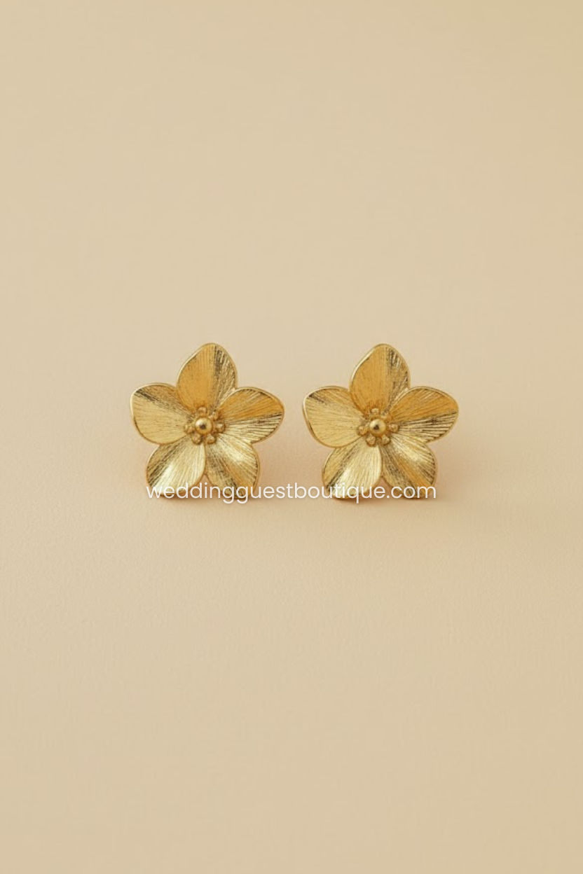 Radiate elegance with the Kylie earrings, a timeless pair that captures the beauty of nature in a refined, feminine design. Crafted with a delicate floral motif and finished in radiant gold plating, these earrings bring warmth and sophistication to any look. Lightweight and polished to perfection, they are designed to complement your natural charm from day to night.