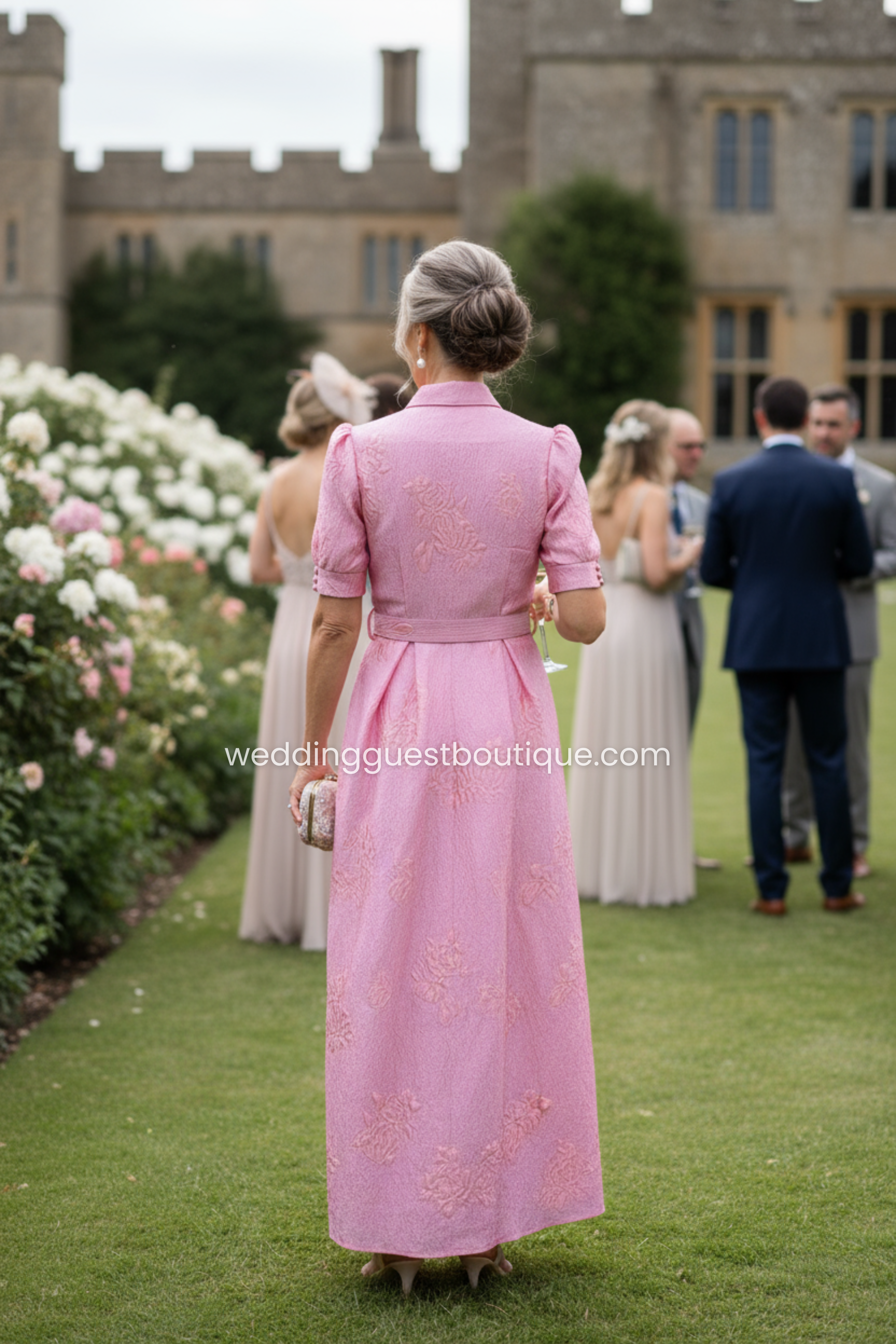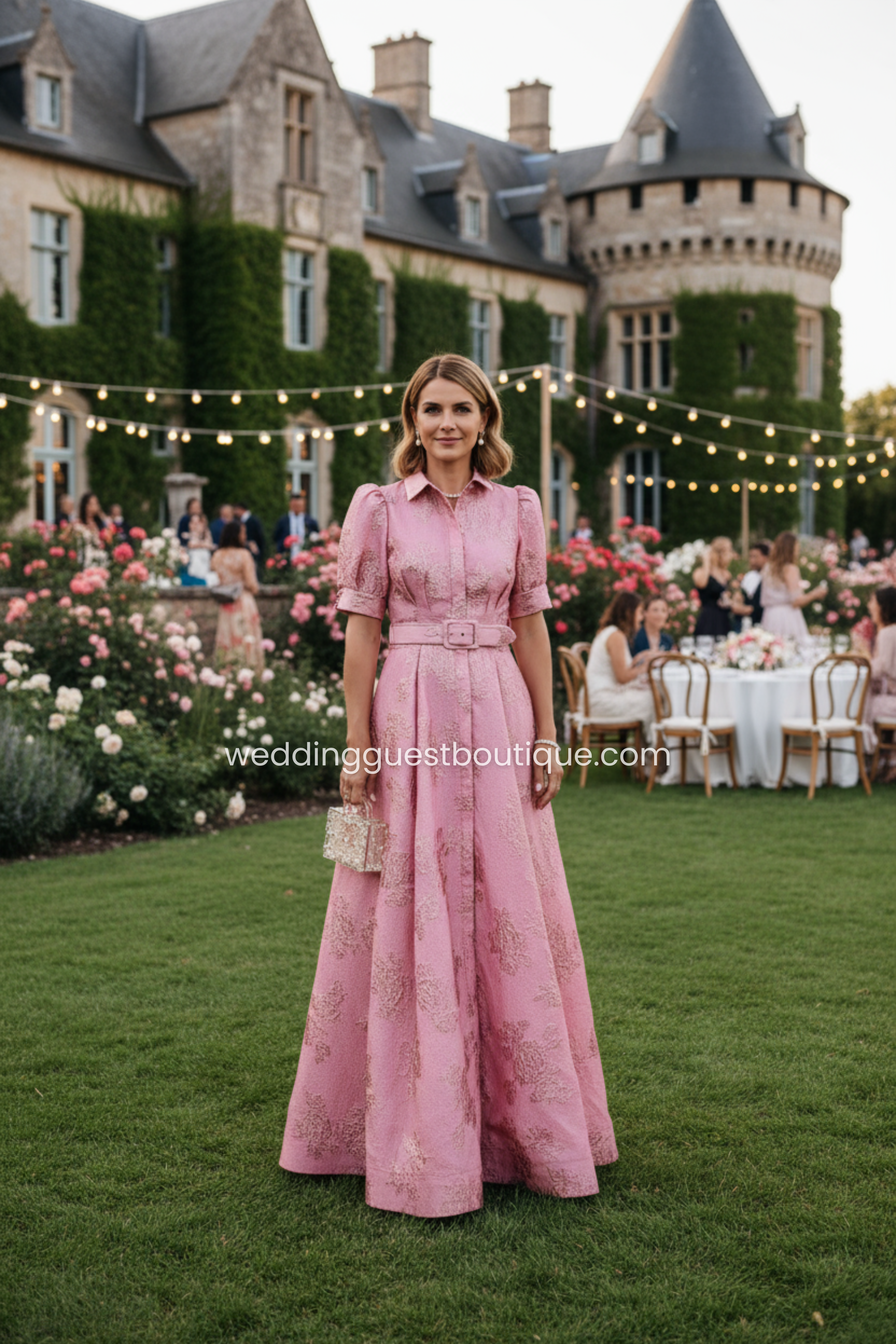 Graceful maxi length that elongates the frame, enhanced by the gentle flow of the skirt for a feminine, romantic finish.