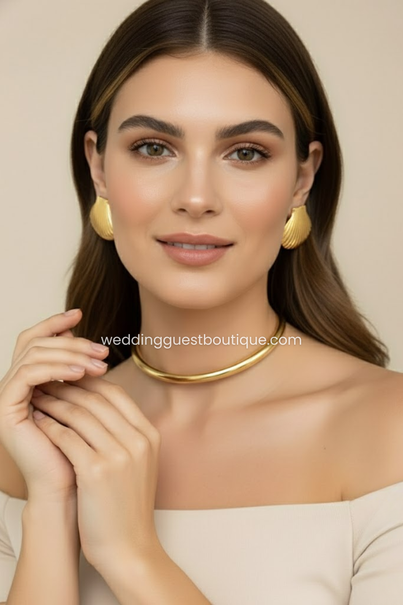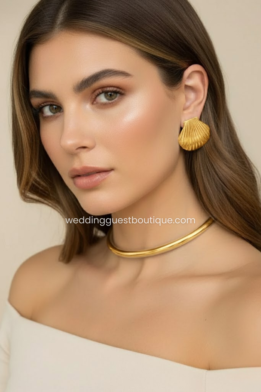 Channel seaside sophistication with the Marina earrings, a graceful pair inspired by the serene beauty of the ocean. Featuring a delicate shell motif and polished metallic finish, these earrings add a touch of coastal charm to any look. Lightweight and refined, they’re designed to bring effortless elegance from sunrise to sunset.