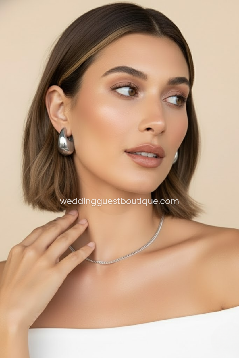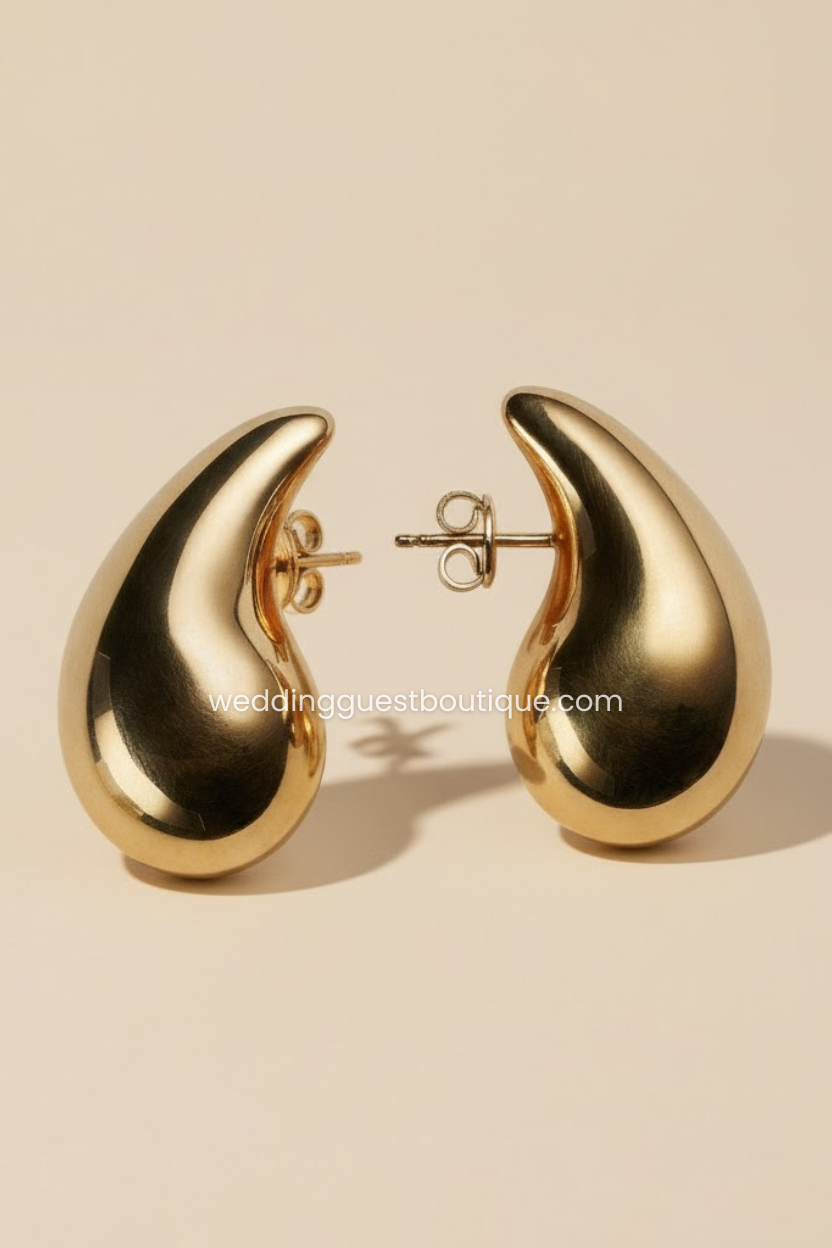 Enhance your look with the Selene earrings, a timeless pair that blends simplicity and sophistication. Featuring a sleek droplet silhouette and polished metallic shine, these earrings bring a touch of graceful movement to every ensemble. Lightweight yet striking, they transition seamlessly from daytime refinement to evening glamour.