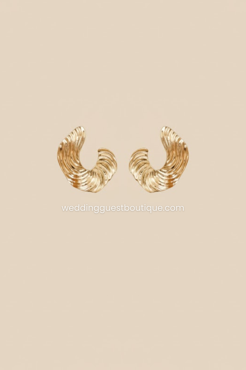 Command attention with the Willow earrings, a sculptural masterpiece that combines modern artistry with timeless elegance. Featuring a stunning wavy silhouette and a radiant gold-toned texture, these earrings exude sophistication while maintaining a contemporary edge. Lightweight and eye-catching, they bring effortless glamour to any look, from casual chic to evening refinement.